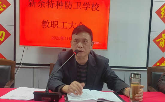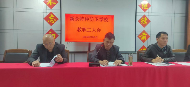 2025年11月3日下午,新余特种防卫学校在大会议室召开期中教职工大会。本次会议以“总结反思促提升,动员部署再扬帆”为主题,旨在全面复盘开学以来各项工作,凝聚共识、锚定目标,为下一阶段教育教学等各项工作注入新动能。会议由常务副校长王纬主持,全体教职工参会。