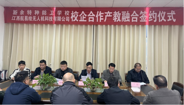 2025年12月19日上午,新余特种防卫学校与江西航易绘无人机科技有限公司校企合作产教融合签约暨揭牌仪式成功举行。仪式由副校长胡正胜主持。