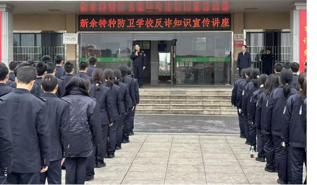 为增强全校师生识诈、防诈、反诈的意识和能力,切实筑牢校园安全防线,2026年1月5日下午,新余特种防卫学校在新年伊始,特别邀请新余市反诈中心晏警官一行三人走进校园,开展了一场主题鲜明、形式多样的反诈宣教活动。