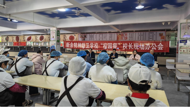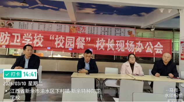 春季开学之际,为切实筑牢校园食品安全防线,优化校园餐服务保障,2026年3月10日下午,新余特种防卫学校在食堂大厅召开校园餐校长现场办公会。校领导班子、膳食监督家长委员会部分代表及全体食品餐饮从业人员参加会议,聚焦食品安全、服务提升、师生满意度等重点工作现场部署、现场推进。